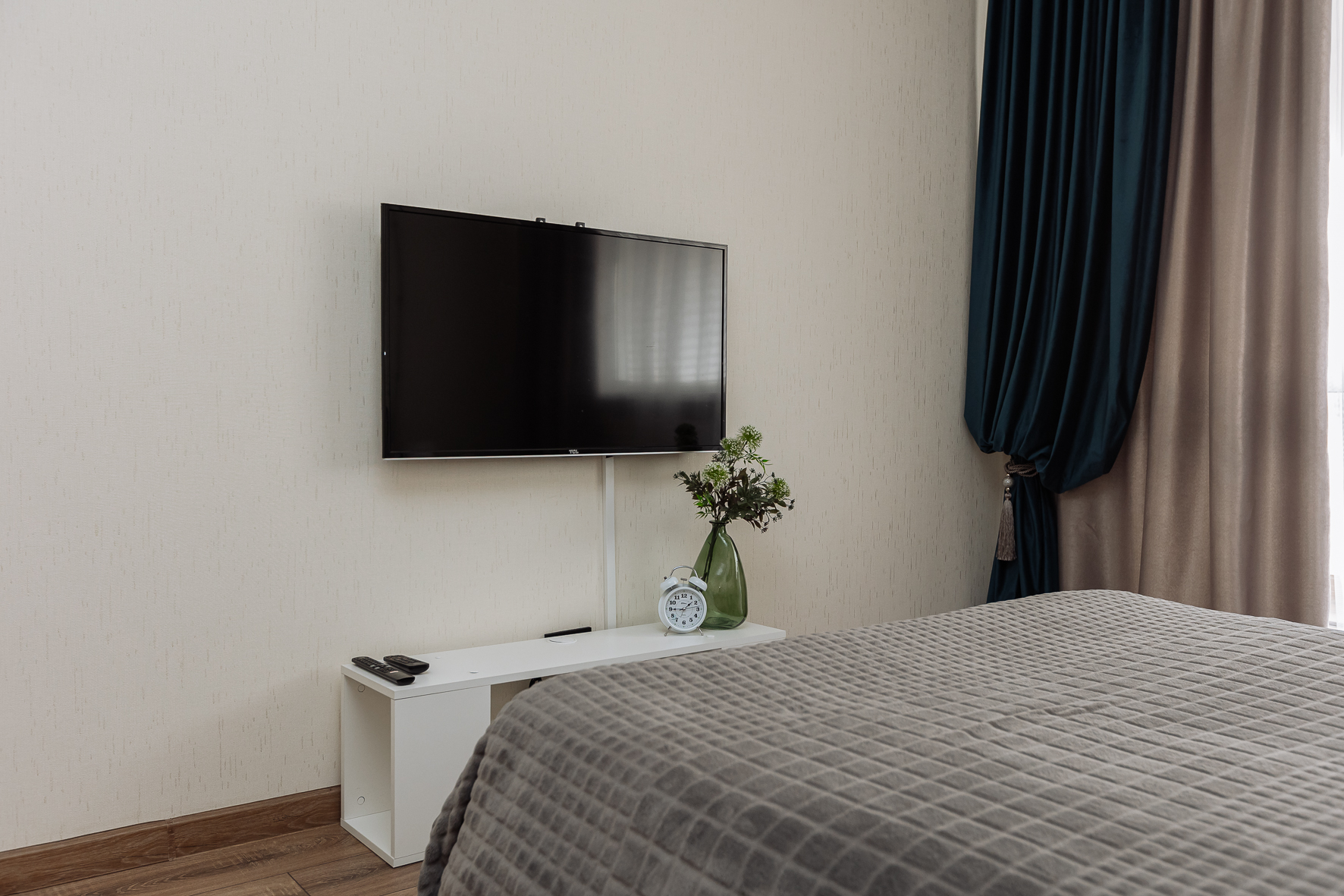 на Мариупольской улице. К услугам гостей однокомнатный 2-местный номер со светлым интерьером. В номере – кухня с электроплитой, электрочайником, микроволновой печью и холодильником, есть стиральная машина, телевизор-ЖК и высокоскоростной интернет, а в санузле – ванная и косметические принадлежности для гостей. Для автовладельцев рядом с домом предусмотрена открытая охраняемая парковка.